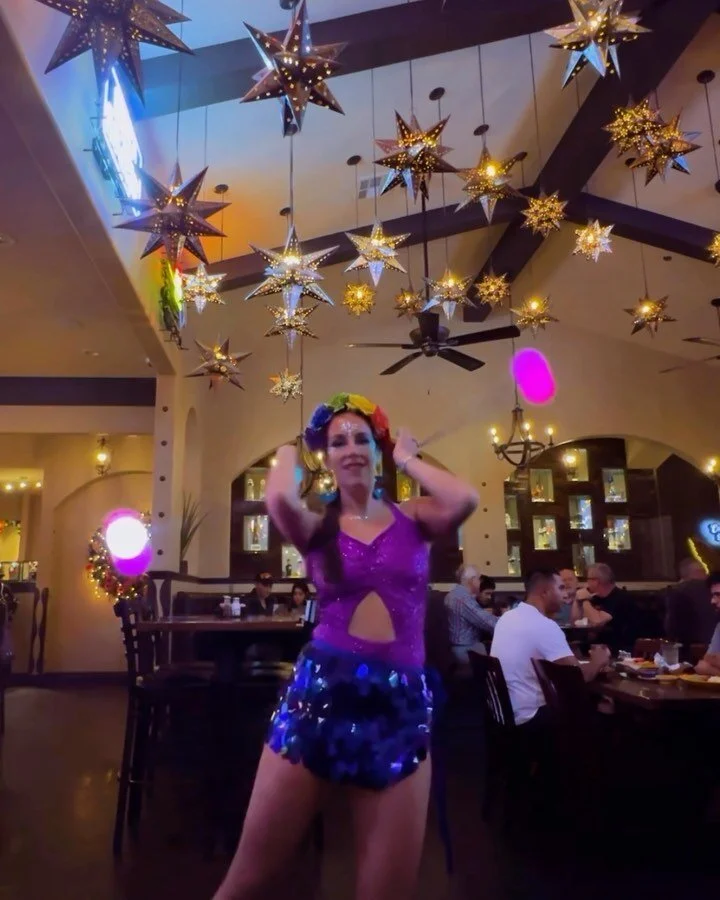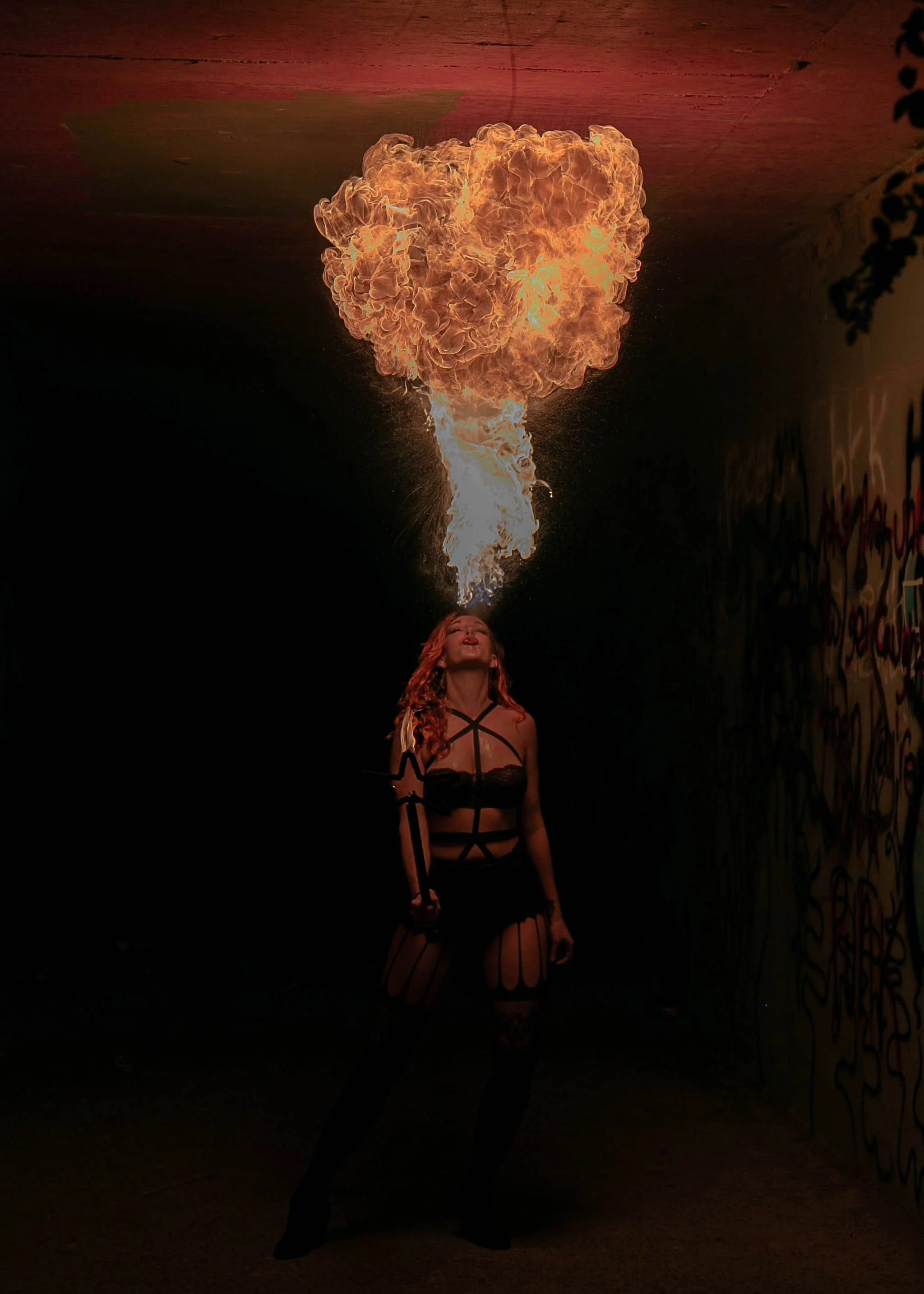 In 2020 she moved beyond solo work and began co-directing Pyrotex Fire Collective, a storytelling fire show of 32 dancers that was selected to showcase their performance at Burning Man in 2022.
