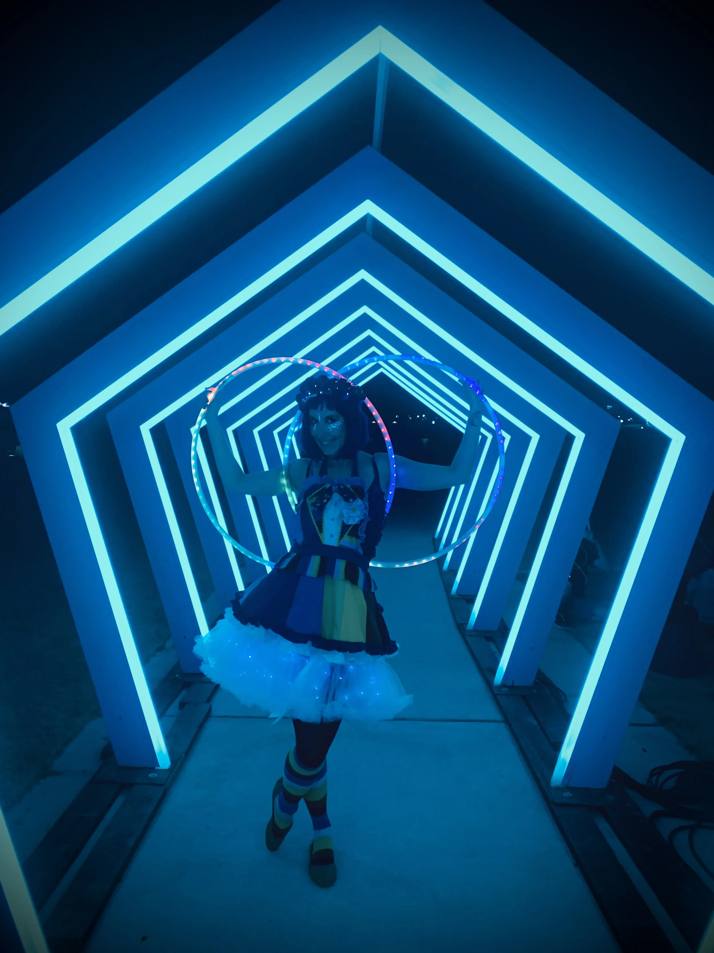 Glow dancers add color, sparkle and magic to any event. Great for corporate parties, nightclubs, holiday parties and more! Journey has 10+ props to choose from, all this their unique style and flavor including circus hooping. Choreographed duets and larger ensembles are available upon request. Also upon request are programmable poi!