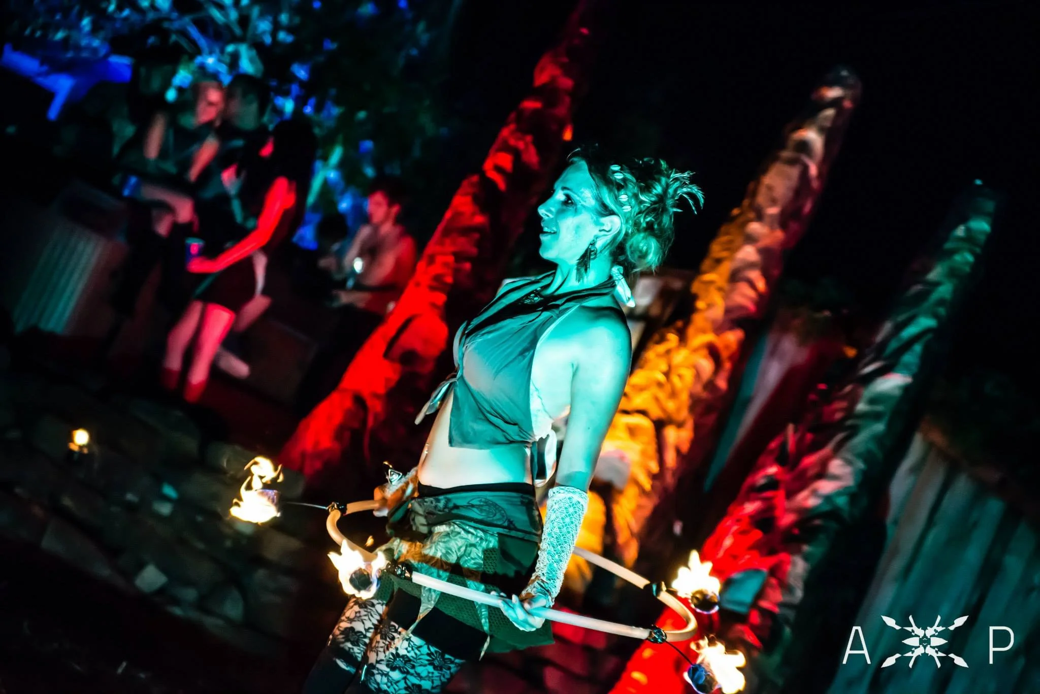 Journey Jolley is the leader on safety for fire dancers in Austin and one of the only Flame Effects Operator making her extremely knowledgable on both safety and the legal side of fire performing. She always provides inspected fire extinguishers and fire retardant blankets, and has highly trained assistants. The safety of the space and her audience is her highest concern.